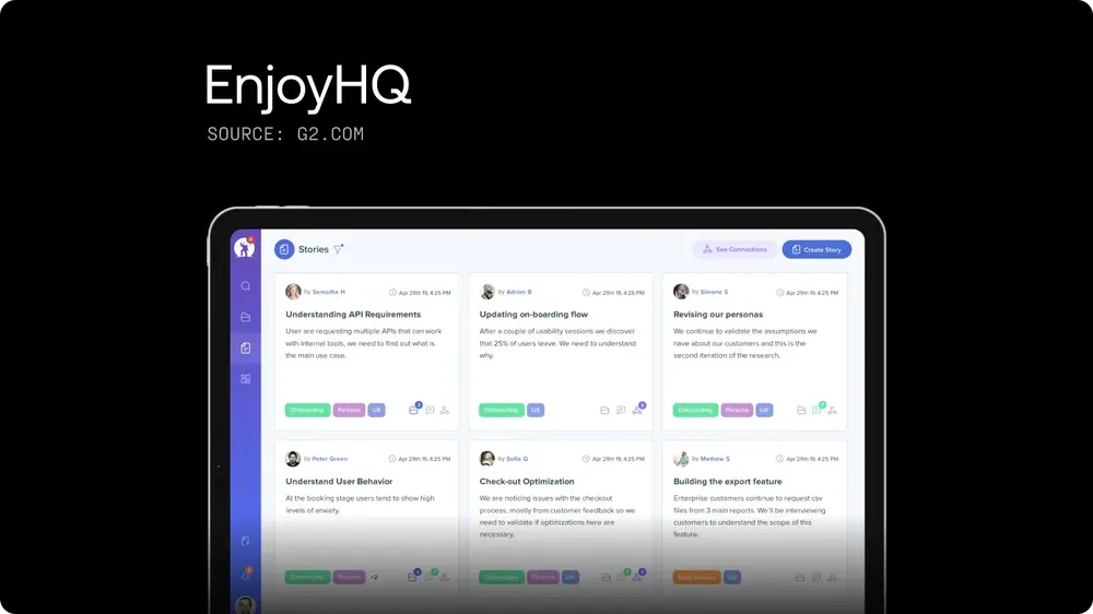 EnjoyHQ also integrates with popular tools used in UX research and project management, such as Slack, Jira, Trello, Zoom, and Google Drive. These integrations support seamless workflows and enhance the management of the research process.