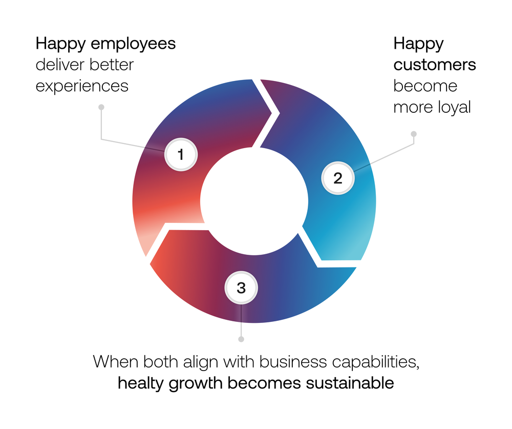 This triad creates a virtuous cycle: When employees have what they need to succeed, they deliver better experiences. When customers feel understood, they become more loyal. When both align with business capabilities, the result is sustainable growth rather than unsustainable promises.